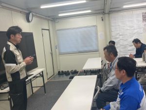 元請職員様、協力会社様合わせて50名近くの方に集まっていただきましたが、聞いてくださる職長さんや職人さんの姿勢が素晴らしく、とても話しやすくてありがたかったです。